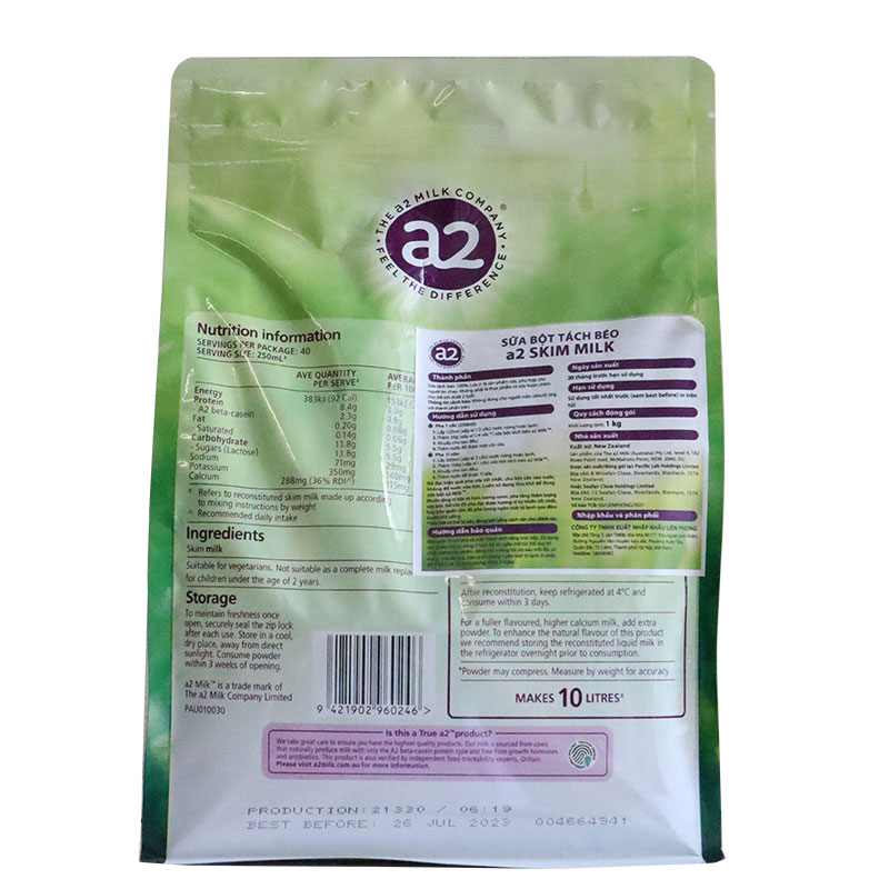 (Úc) Sữa Úc tách kem bổ sung nhiều Canxi A2 Skim Milk High Calcium 1kg
