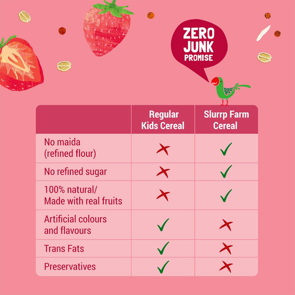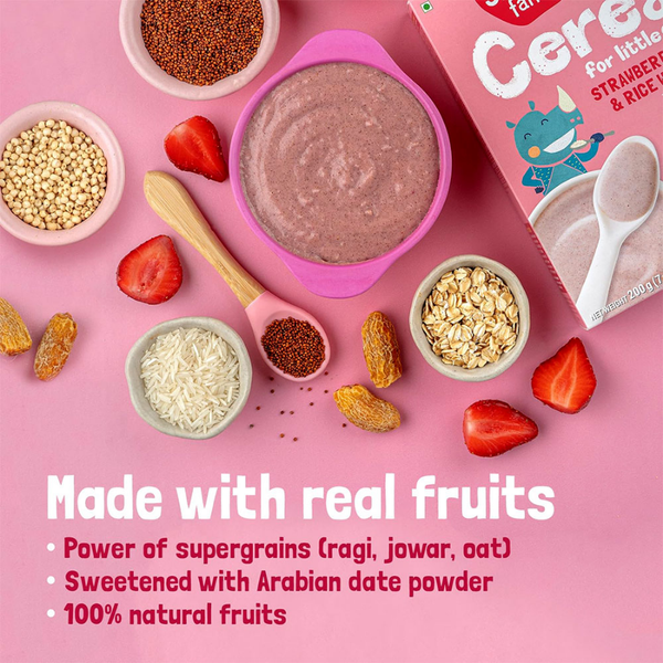 Bột Ăn Dặm Hữu Cơ Không Đường Cho Bé 6m+ Slurrp Farm Cereal - Vị Dâu Tây, Hạt Ragi, Gạo và Sữa 200g (Hộp)