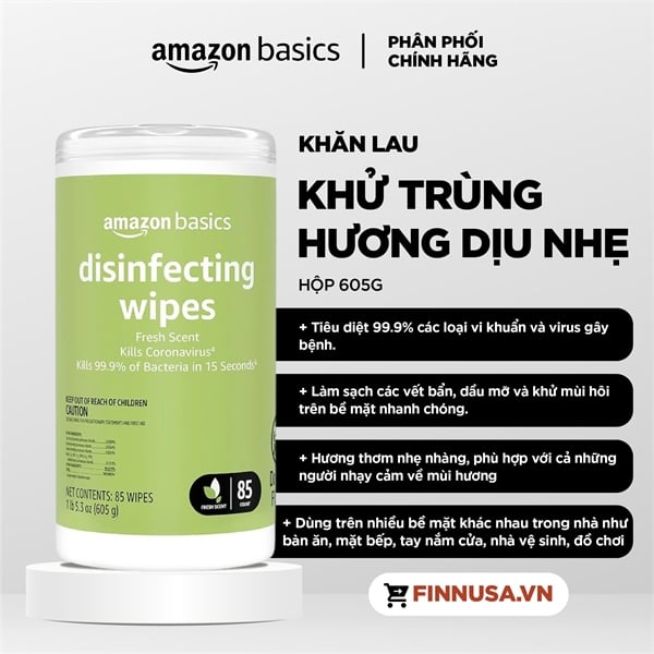 NK - Khăn lau khử trùng hương dịu nhẹ Amazon Basics Disinfecting Wipes, 85 Count 5.3Oz 605g