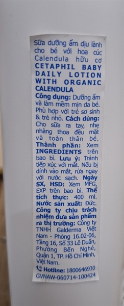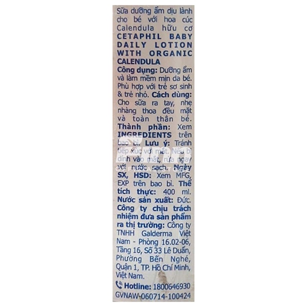 NK -Sữa dưỡng da cho bé Cetaphil Baby Daily Lotion With Organic Calendula 400ml
