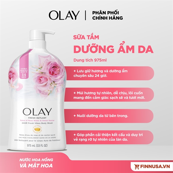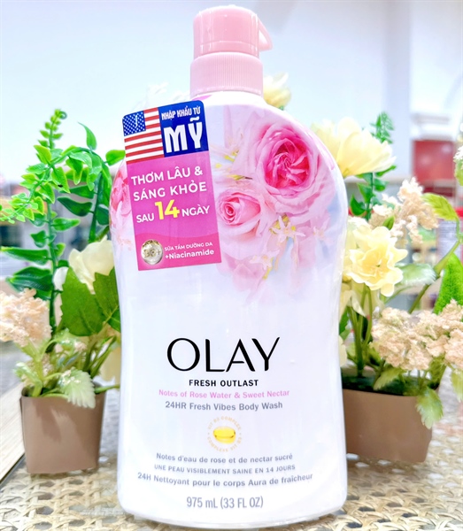 NK - Sữa tắm Olay Fresh Outlast Body Wash Notes of Rose Water & Sweet Nectar 24HR Fresh Vibes 975mL 33Oz