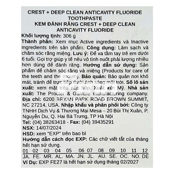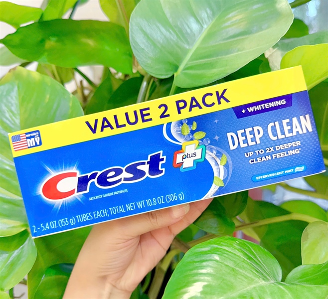 NK - 2 kem đánh răng Crest Plus Deep Clean + Whitening Fluoride Anticavity Toothpaste VALUE 2 PACK 10.8Oz 306g