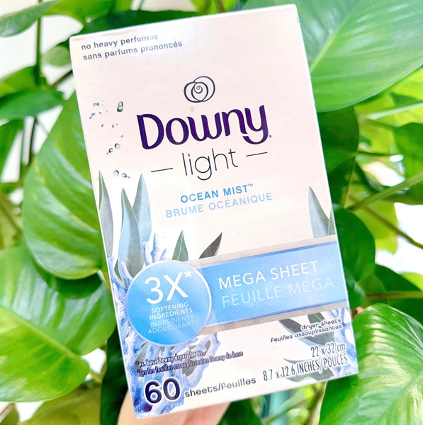 Giấy thơm quần áo Downy Light Ocean Mist Dryer Sheets 60 tờ