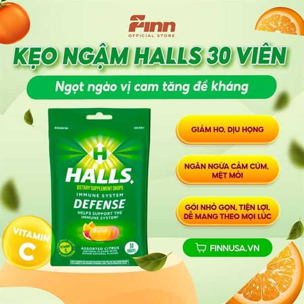 Kẹo ngậm giảm ho Halls Defense Vitamin C Assorted Citrus 30 viên