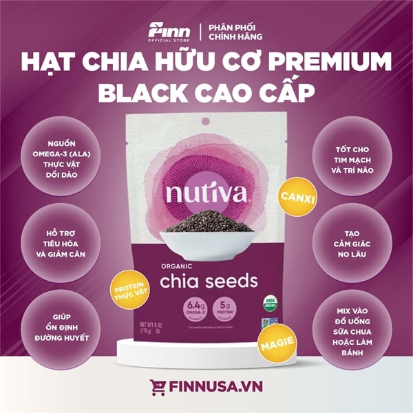 Hạt chia Nutiva Organic Premium Chia Seeds Black 6Oz 170g