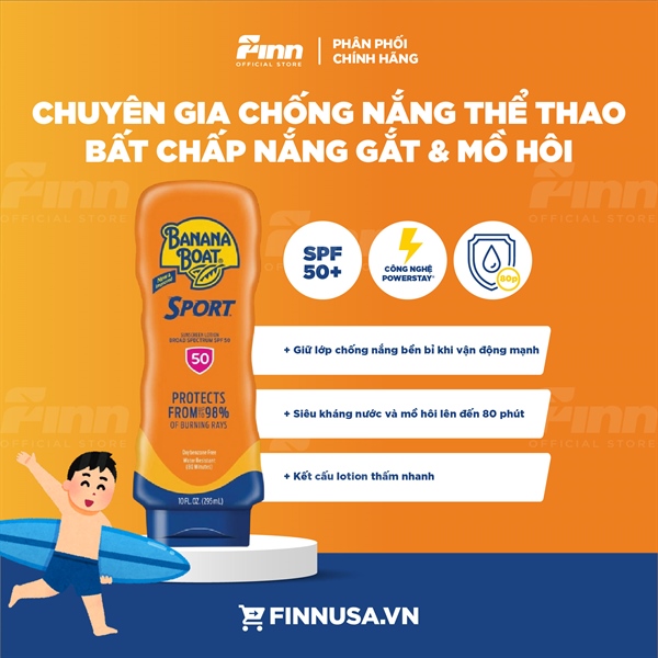 Kem chống nắng Banana Boat Sport Sunscreen Lotion Broad Spectrum SPF50 10 fl Oz 295 mL