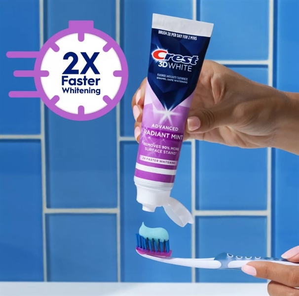 Kem đánh răng Crest 3D White Advanced Teeth Whitening Toothpaste, Radiant Mint 3.3Oz 93g