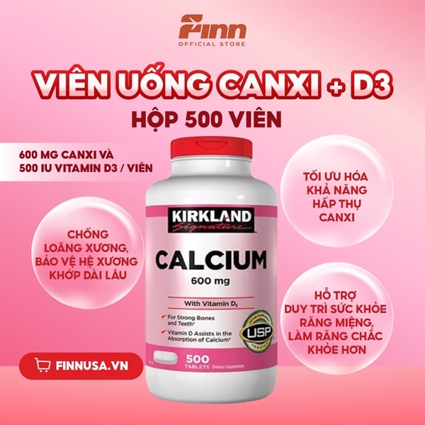 Viên uống bổ sung canxi Kirkland Signature™ Calcium 600mg + D3 500 viên