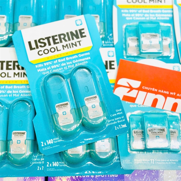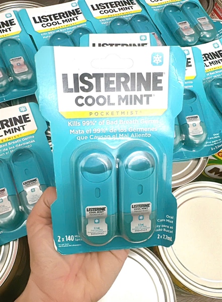 Set 2 xịt thơm miệng Listerine PocketMist Oral Care Mist Cool Mint 2 x 7.7ml