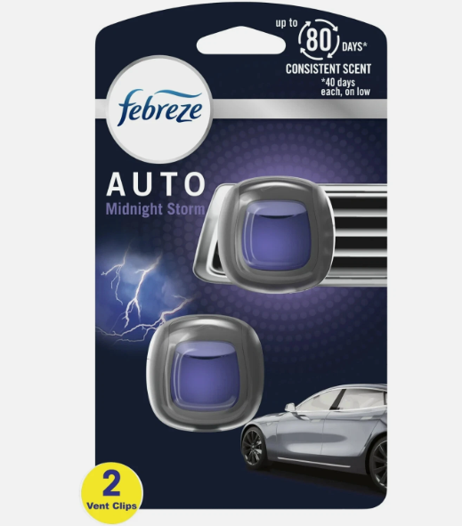 Set 2 nước hoa thơm xe Febreze Car Air Freshener Vent Clips Midnight Storm Scent 0.07Oz 2.2ml