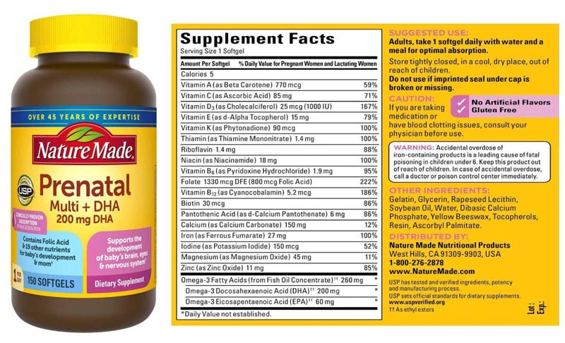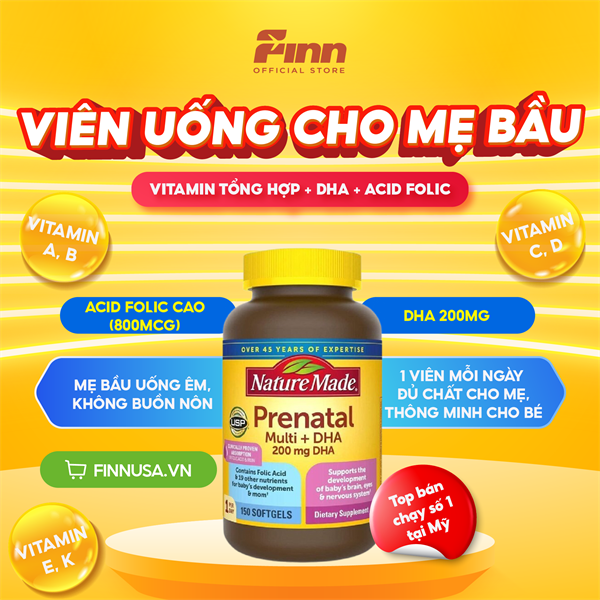 Viên uống bổ sung vitamin tổng hợp cho mẹ bầu Nature Made Prenatal Folic Acid + DHA 150 viên
