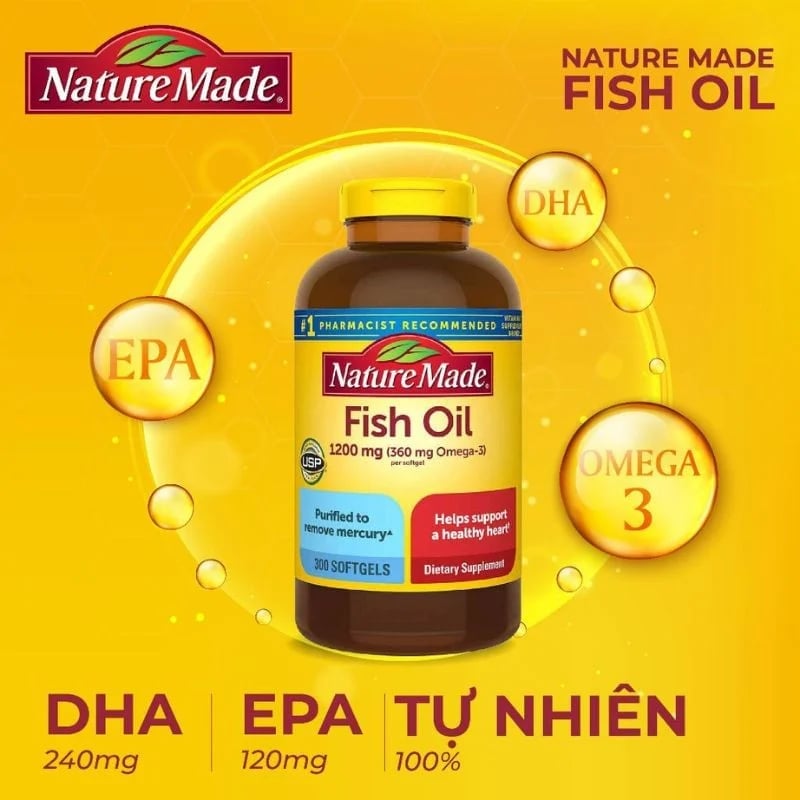 Viên uống bổ sung Omega 3 Nature Made Fish Oil 1200mg 300 viên