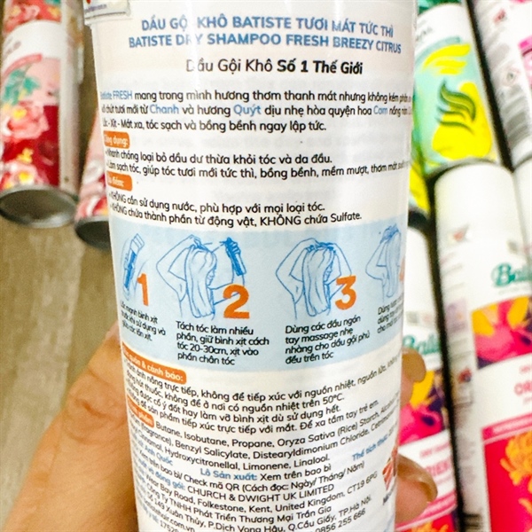 NK - Dầu gội khô Batiste Dry Shampoo Fresh Breezy Citrus hương tươi mát 200ml