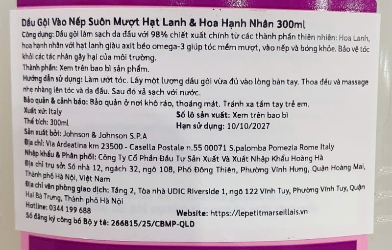 NK - Dầu Gội Vào Nếp Suôn Mượt 97% Hữu Cơ Le Petit Marseillais Chiết Xuất Hạt Lanh & Hoa Hạnh Nhân 300ml