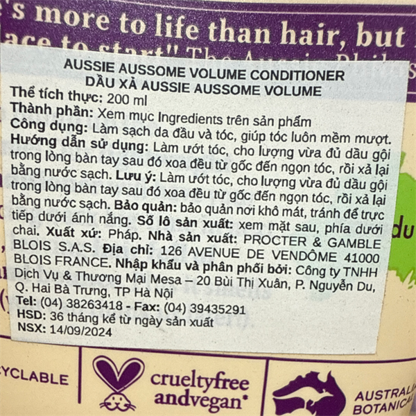 NK - Dầu xả Aussie Aussome Volume 200ml