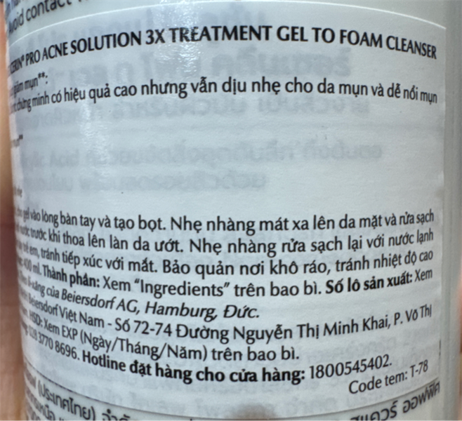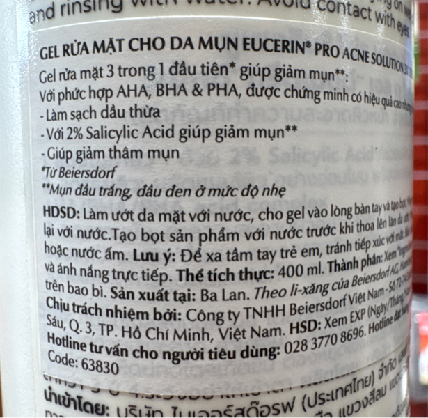 NK - Sữa rửa mặt Eucerin cho da mụn Pro Acne Solution 3X Treatment Gel To Foam Cleanser 400ml