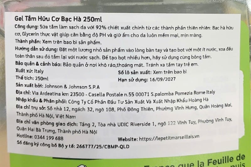 NK-Gel Tắm 92% Hữu Cơ Le Petit Marseillais Chiết Xuất Bạc Hà 250ml