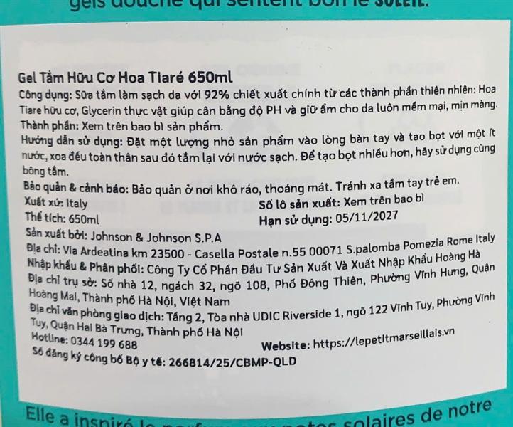 NK - Gel Tắm 92% Hữu Cơ Le Petit Marseillais Chiết Xuất Hoa Tiare 650ml