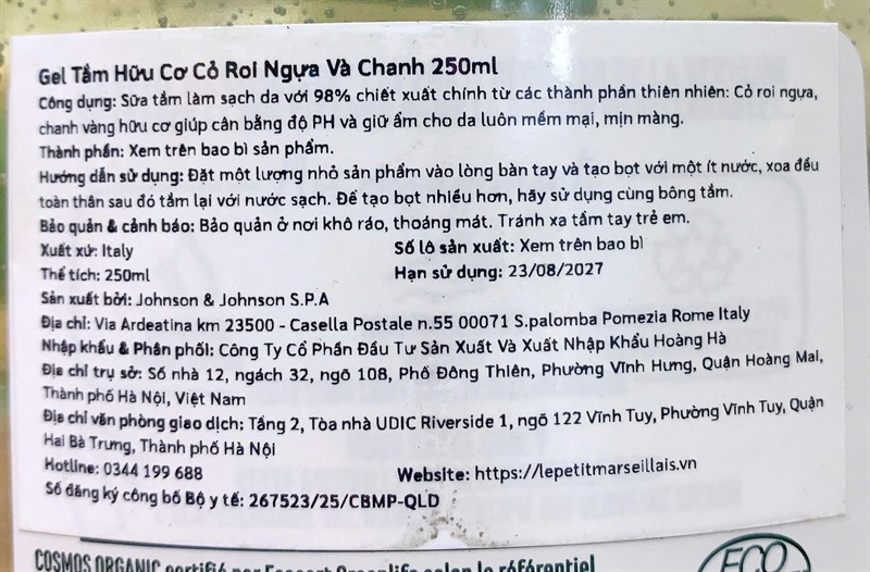 NK-Gel tắm 98% Hữu Cơ Le Petit Marseillais Cỏ Roi Ngựa & Chanh 250mL