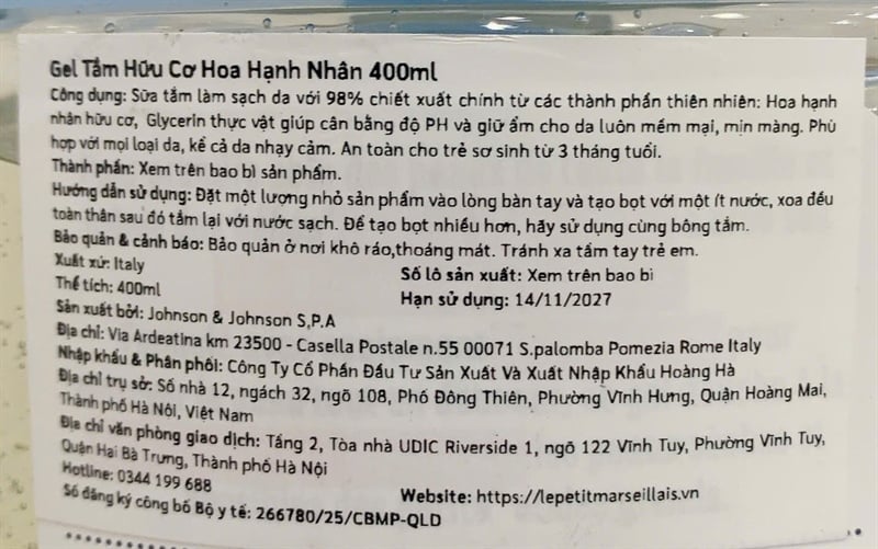 NK-Gel Tắm 98% Hữu Cơ Le Petit Marseillais Hoa Hạnh Nhân Hữu Cơ 400ml