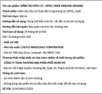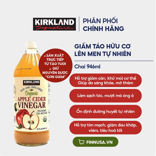 NK - Giấm Táo Hữu Cơ Kirkland Signature Organic Apple Cider Vinegar 32Oz 946ml
