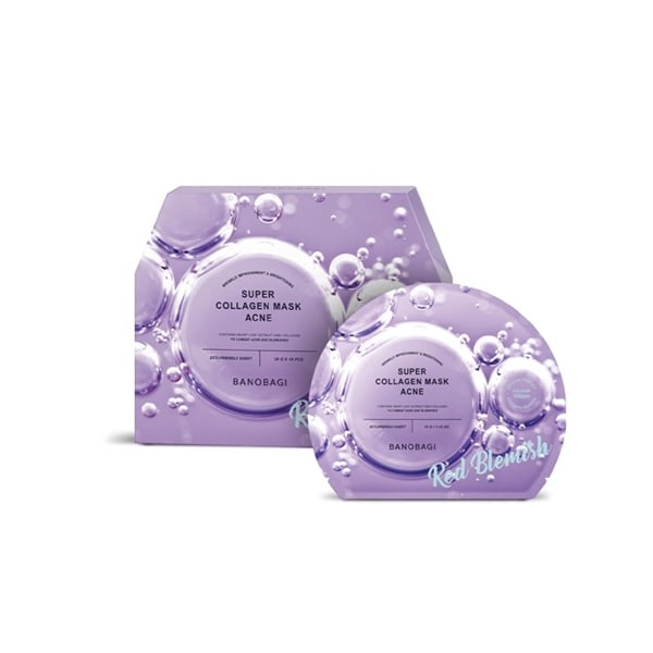 NK - Hộp 10 miếng mặt nạ kháng viêm hỗ trợ da mụn Banobagi Super Collagen Mask Acne Red Blemish