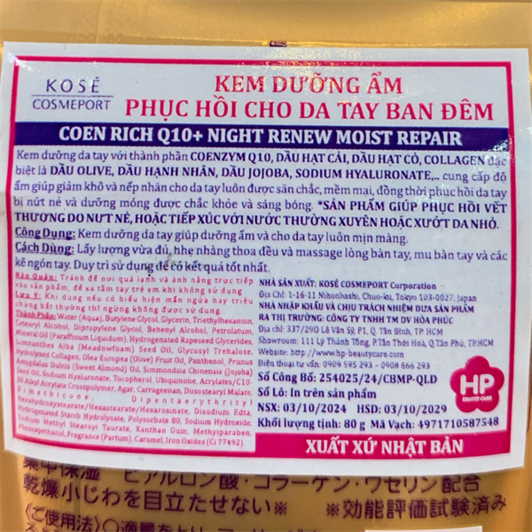 NK - Kem dưỡng da tay Kose CoenRich Q10 Night Renew 80g