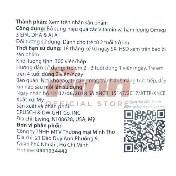 NK-Kẹo bổ sung vitamin tổng hợp cho bé L'il Critters Gummy Vites 300 viên