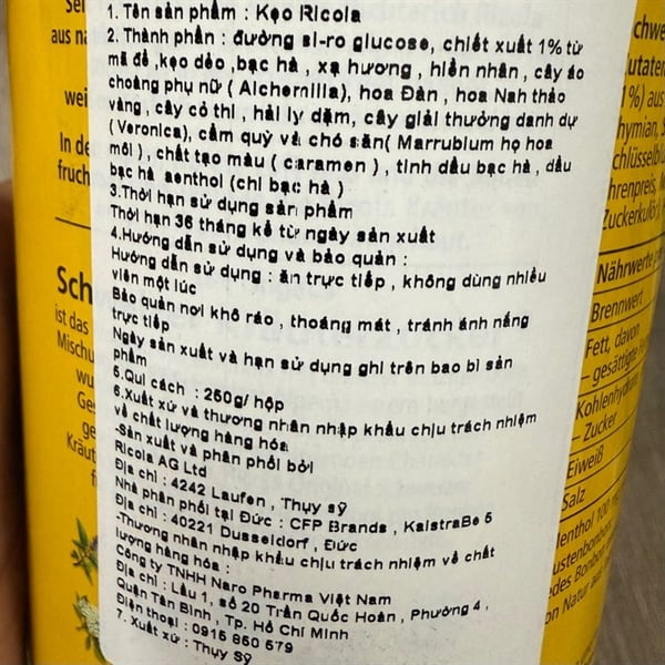 NK - Kẹo ngậm giảm ho Ricola Schweitzer Krauterzucker 250g