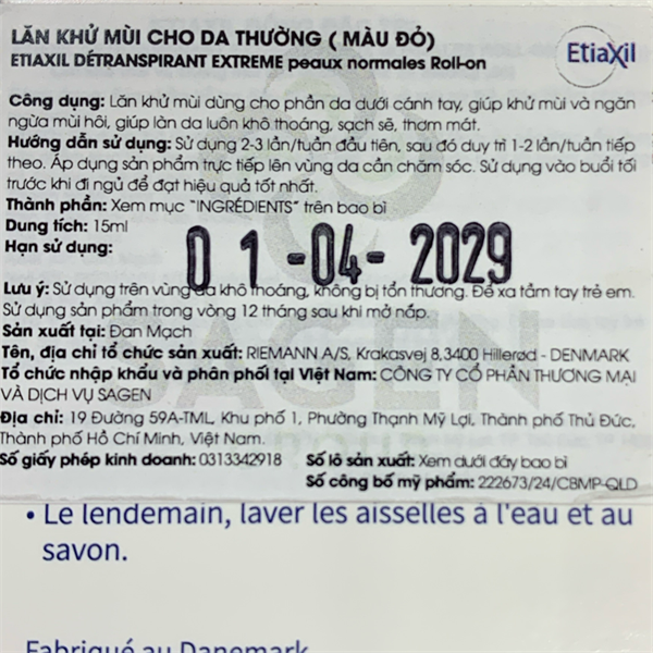 NK - ( Đỏ ) Lăn khử mùi cho da thường EtiaXil Detranspirant Extreme Peaux Normales Roll-On 15ml
