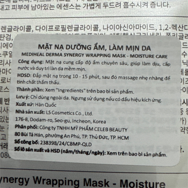 NK - Hộp 4 miếng mặt nạ dưỡng ẩm, làm mịn da Mediheal Derma Synergy Wrapping Mask Hyaluron & Panthenol 25ml