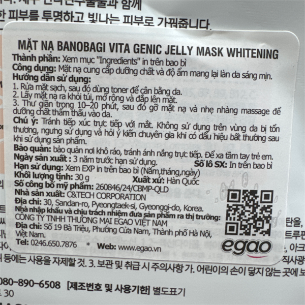 NK - Mặt nạ làm sáng da Banobagi Vita Genic Jelly Mask Whitening Premium