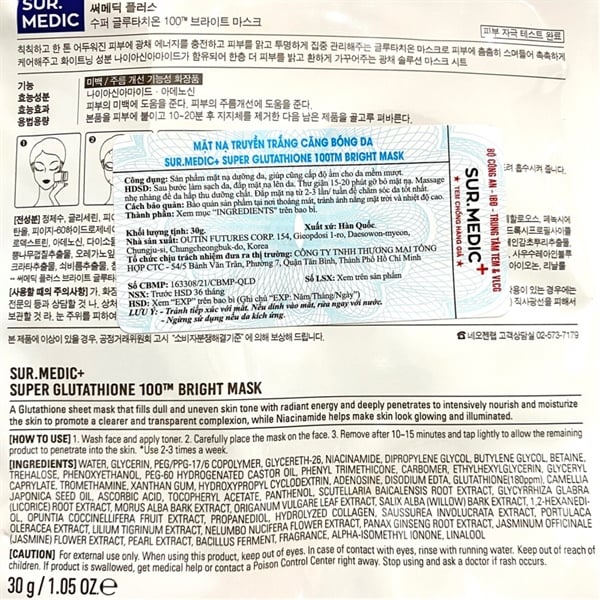 NK - Mặt nạ truyền trắng căng bóng da Sur.Medic Super Glutathione 100TM Bright Mask 30g
