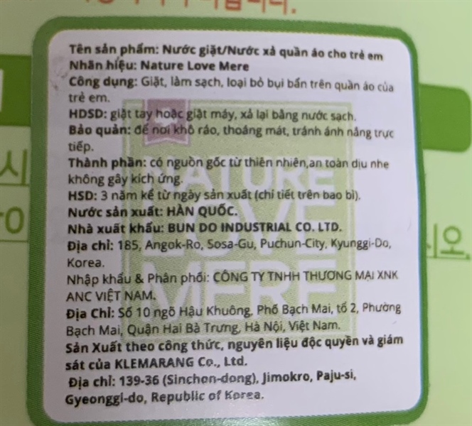 NK - Nước giặt quần áo trẻ em thuần chay Nature Love Mere chiết xuất đậu nành 1.3L