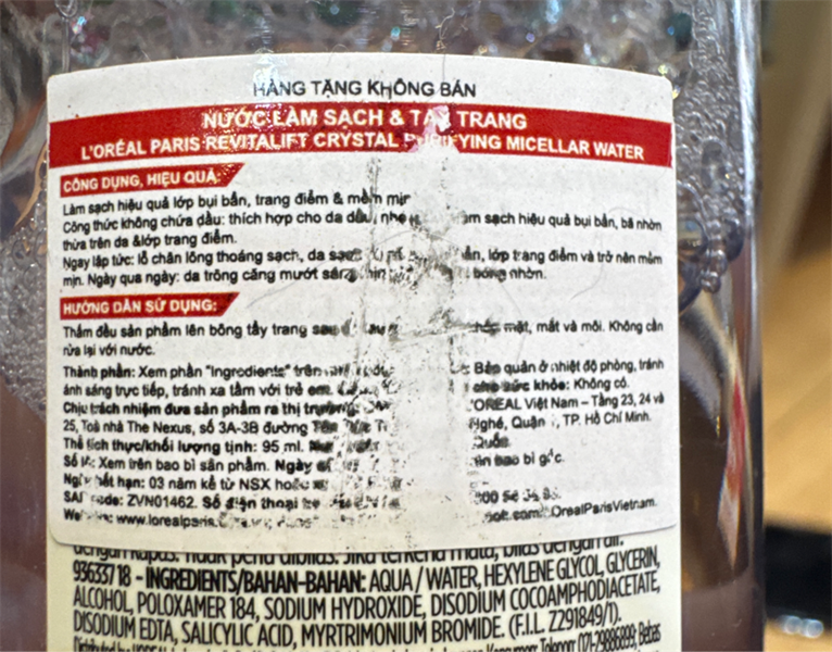 NK - Nước làm sạch và tẩy trang cho da dầu Loreal Revitalift Crystal Micellar Water 95ml