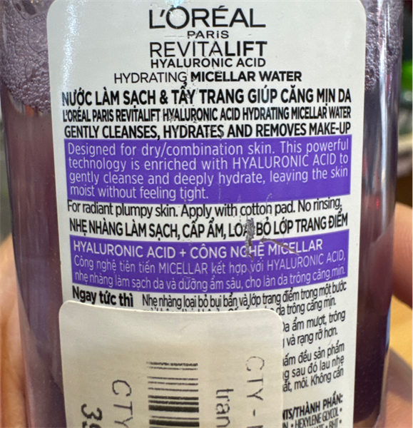 NK - Nước làm sạch và tẩy trang giúp căng mịn da L'Oreal Paris Revitalift Hyaluronic Acid Micellar Water 95ml
