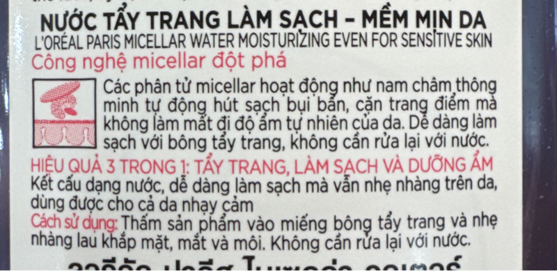 NK - Nước làm sạch và tẩy trang mềm mịn da L'Oreal Micellar Water 3-in-1 Moisturizing Even For Sensitive Skin 400ml