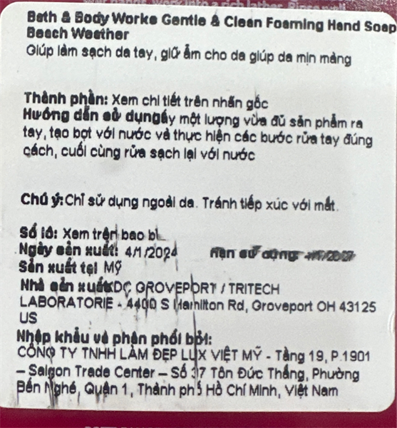 NK - Nước rửa tay dạng bọt BBW Gentle & Clean Foaming Hand Soap Beach Weather 8.75Oz 259ml