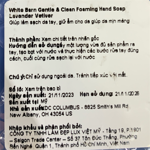 NK - Nước rửa tay dạng bọt BBW Gentle & Clean Foaming Hand Soap Lavender Vetiver 8.75Oz 259ml
