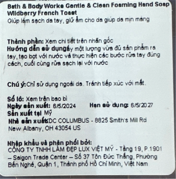 NK - Nước rửa tay dạng bọt BBW Gentle & Clean Foaming Hand Soap Wildberry French Toast 8.75Oz 259Ml