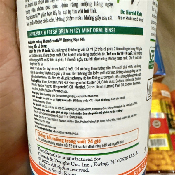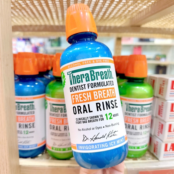 NK - Nước súc miệng TheraBreath Fresh Breath Dentist Icy mint hương bạc hà 473ml