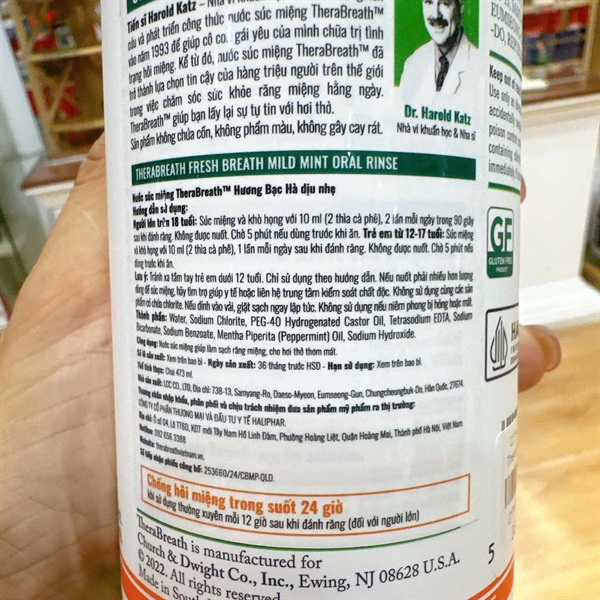 NK - Nước súc miệng TheraBreath Fresh Breath Dentist Mild mint hương bạc hà dịu nhẹ 473ml