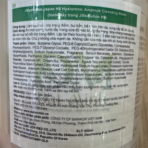 NK - Nước tẩy trang cho mọi loại da JMsolution H9 Hyaluronic Ampoule 16.9Oz 500ml