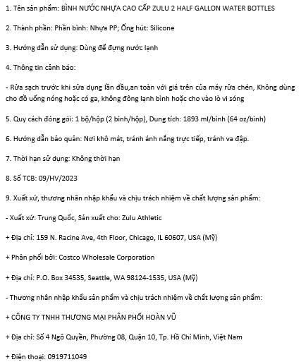 NK - Sét 2 bình nước Zulu half Gallon Water bottle Black and Aqua 1893ml