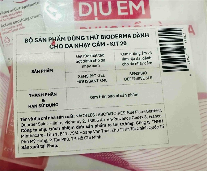 NK - Set bộ sản phẩm dùng thử Bioderma cho da nhạy cảm gồm gel rửa mặt 8ml + kem dưỡng ẩm 5ml