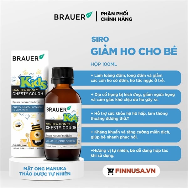 NK - Siro ho cho bé Brauer Kids Manuka Honey Chesty Cough 100ml