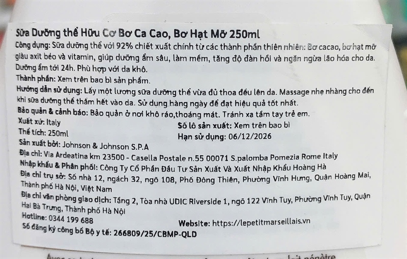 NK-Sữa Dưỡng Ẩm 24h Le Petit Marseillais Bơ Cacao, Bơ Hạt Mỡ 250ml