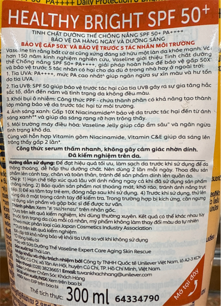 NK - Sữa dưỡng thể Vaseline Healthy Bright chống nắng sáng da SPF 50+300ml