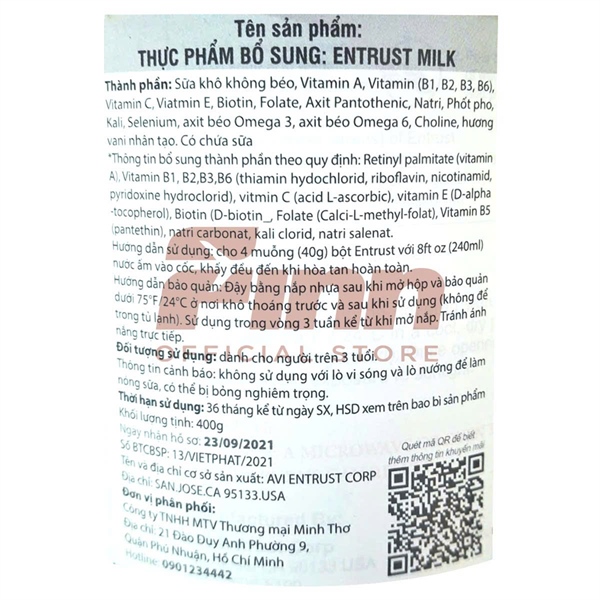 NK-Sữa Mỹ Entrust Best Nutrition Formula Vanilla Flavor 14.1Oz 400g