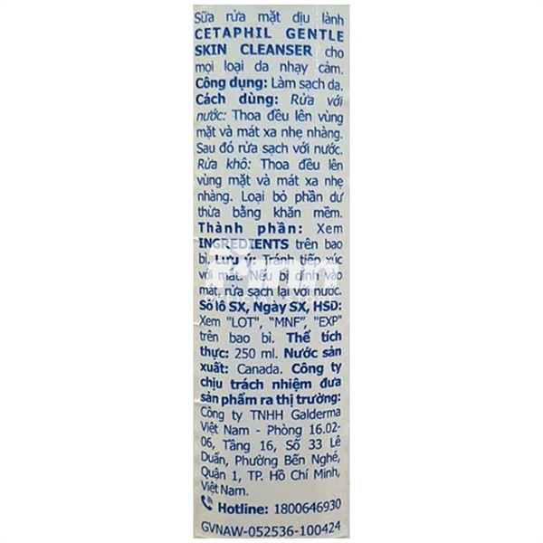 NK - Sữa rửa mặt Cetaphil Gentle Skin Cleanser All Skin Types 250ml